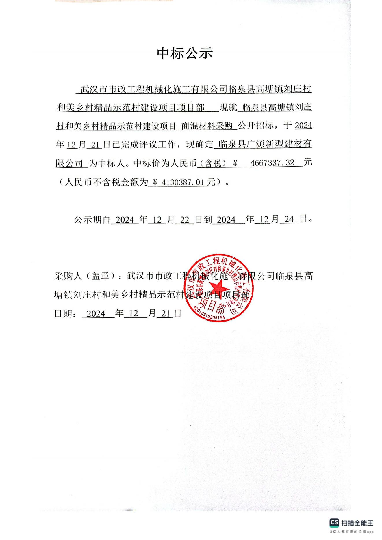 臨泉縣高塘鎮(zhèn)劉莊村和美鄉(xiāng)村精品示范村建設(shè)項(xiàng)目-商混材料采購(gòu)中標(biāo)公示
