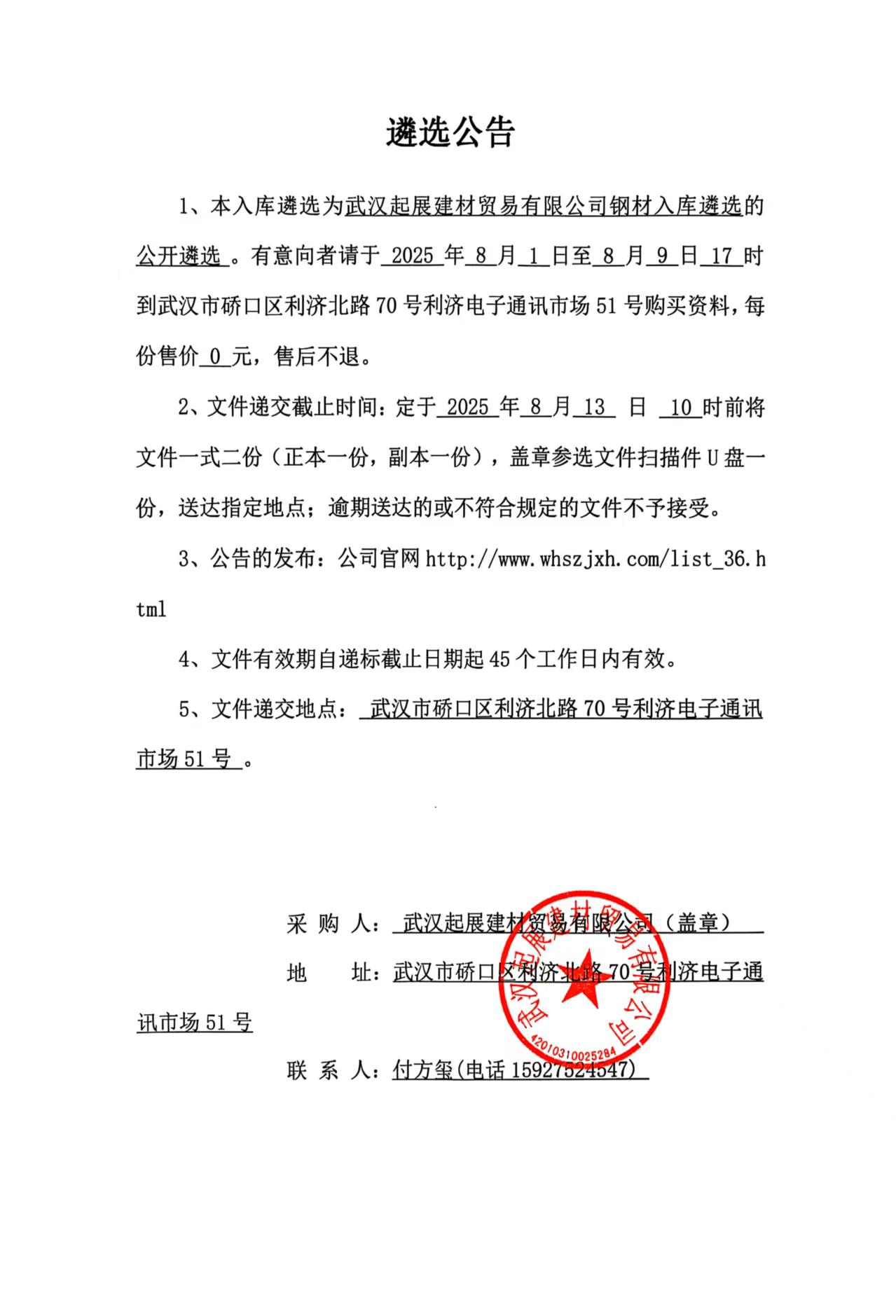 武漢起展建材貿(mào)易有限公司鋼材供方入庫遴選公告