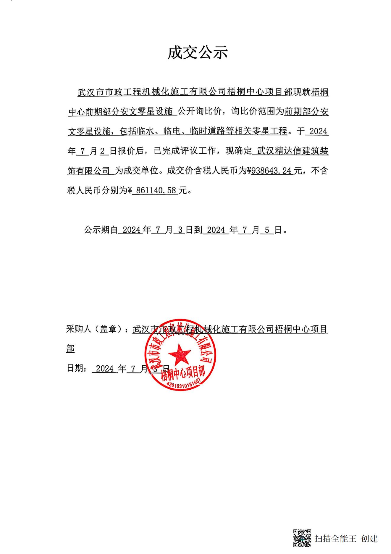 梧桐中心前期部分安文零星設施成交公示