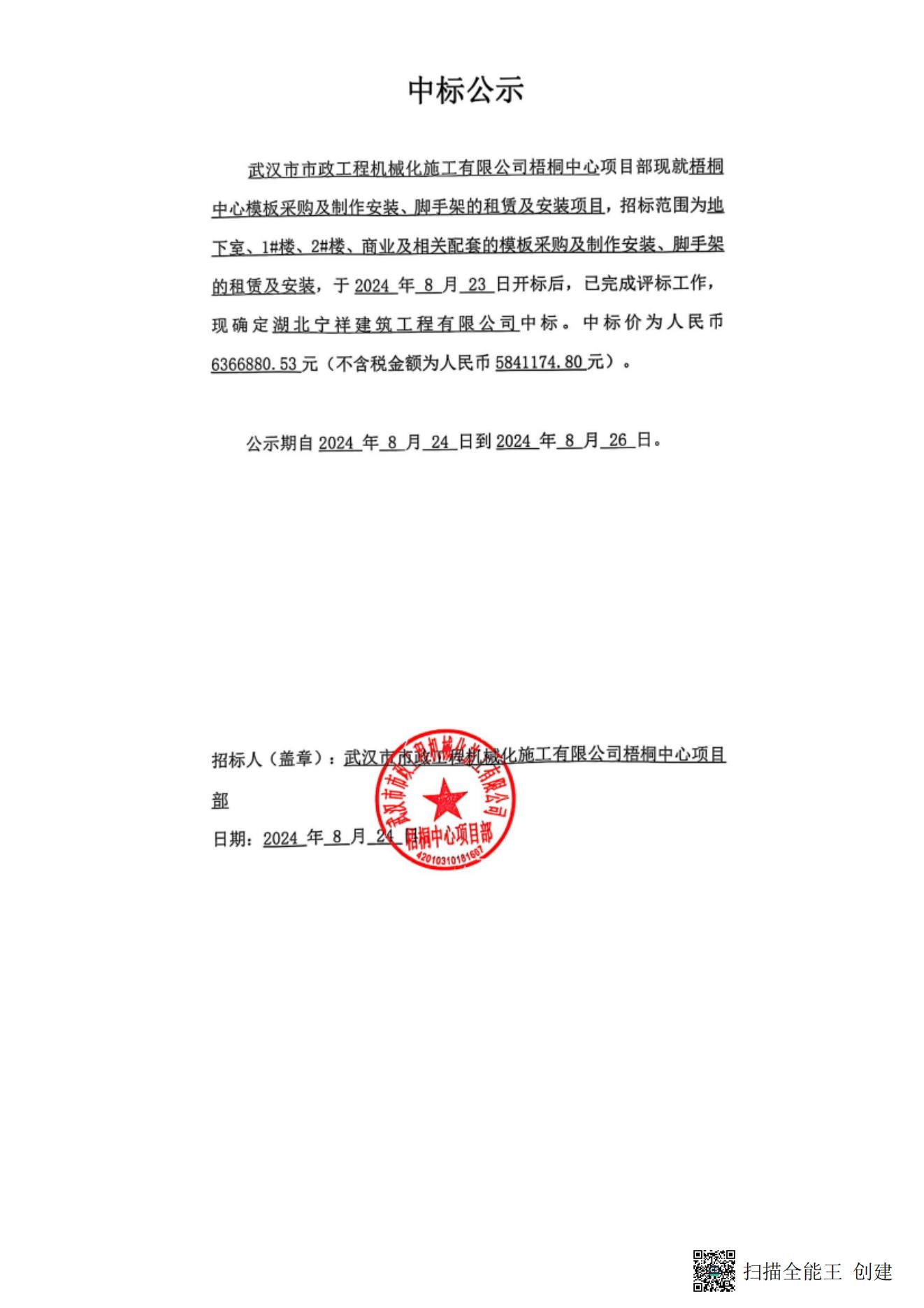 梧桐中心模板采購(gòu)及制作安裝、腳手架的租賃及安裝成交公示