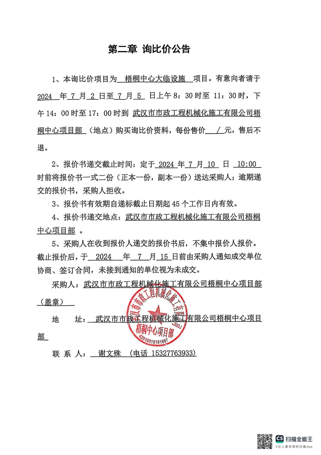 梧桐中心大臨設(shè)施詢價(jià)公告