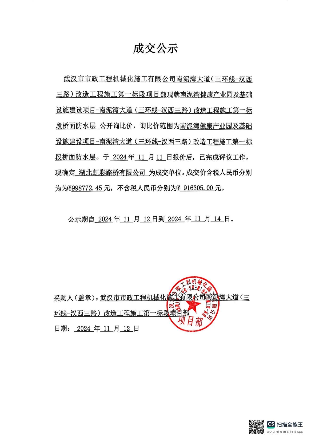 南泥灣健康產(chǎn)業(yè)園及基礎(chǔ)設(shè)施建設(shè)項(xiàng)目-南泥灣大道(三環(huán)線-漢西三路)改造工程施工第一標(biāo)段橋面防水層成交公示
