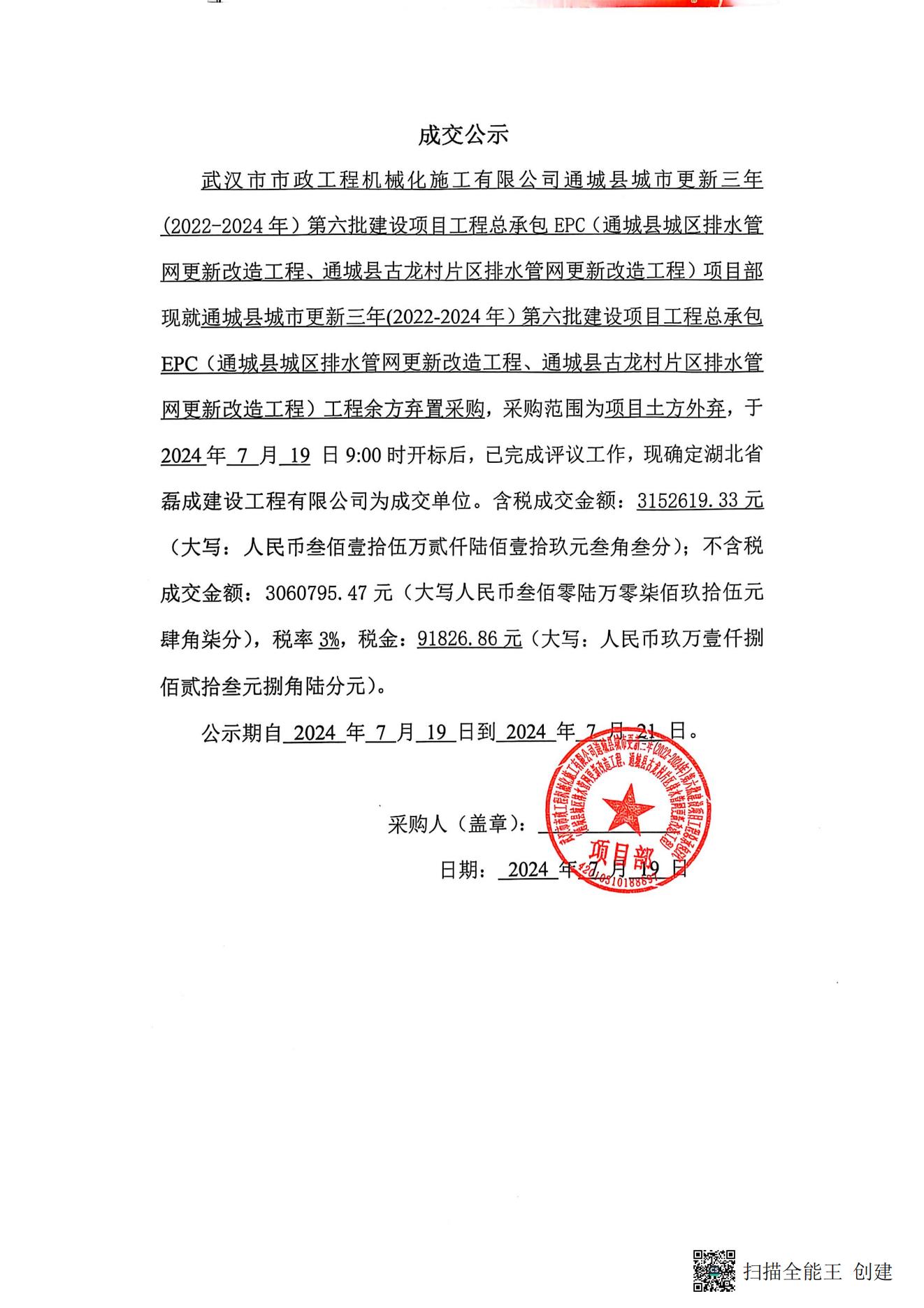 通城縣城市更新三年(2022-2024年)第六批建設(shè)項(xiàng)目工程總承包EPC(通城縣城區(qū)排水管網(wǎng)更新改造工程、通城縣古龍村片區(qū)排水管網(wǎng)更新改造工程)工程余方棄置采購(gòu)成交公示